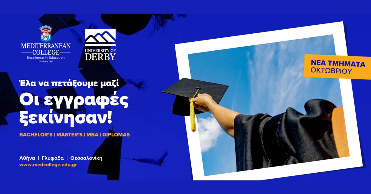 Κάποιες αποφάσεις παίρνονται σε λίγα δευτερόλεπτα. Κι όμως, μπορούν να αλλάξουν ολόκληρη την πορεία της ζωής και της καριέρας σου. Μια τέτοια απόφαση είναι να επενδύσεις στις σπουδές σου. Να επιλέξεις ένα αναγνωρισμένο Bachelor, Master ή MBA που θα σου ανοίξει πραγματικές επαγγελματικές προοπτικές. Στο Mediterranean College (MC) έχεις την ευκαιρία να κάνεις ακριβώς αυτό και μάλιστα να ξεκινήσεις με ένα σημαντικό πλεονέκτημα.