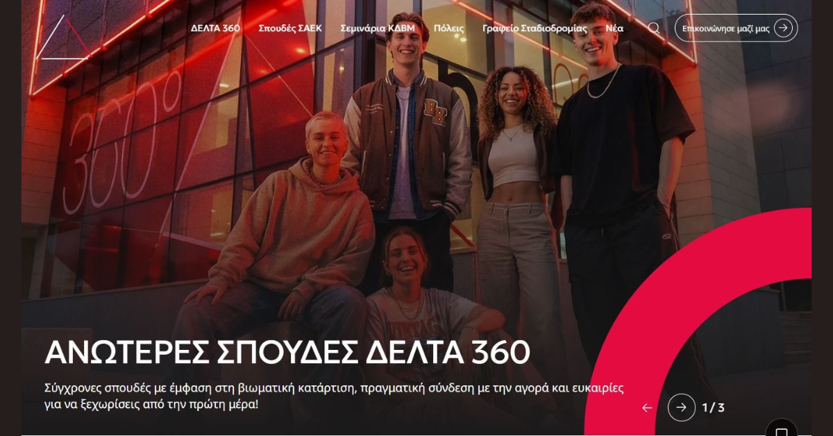 Ο Εκπαιδευτικός Όμιλος ΔΕΛΤΑ 360, ένας από τους κορυφαίους ομίλους επαγγελματικής κατάρτισης της χώρας, ανακοινώνει με ενθουσιασμό την έναρξη λειτουργίας της νέας του ιστοσελίδας, https://www.delta360.gr